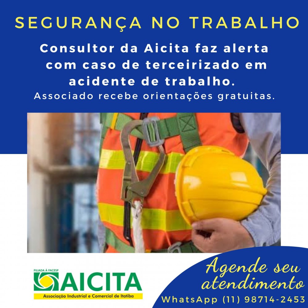 Um dos benefícios do associado da Associação Industrial e Comercial de Itatiba (Aicita) é o atendimento com consultor especializado em gestão de Saúde e Segurança no Trabalho, Eduardo Cintra, da EC Treinamentos, que faz alerta sobre a importância do tema ao citar recente julgamento de um caso envolvendo a morte de um contratado de empresa terceirizada.